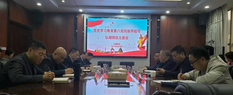 4月26日上午党史学习教育第八巡回指导组来弘湘国投举行见面会,听取弘湘集团对党史学习教育的开展情况汇报。