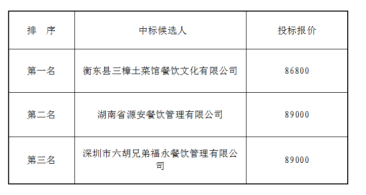 衡阳市衡府宾馆有限公司(养正园)食堂劳务公开比选候选人公示