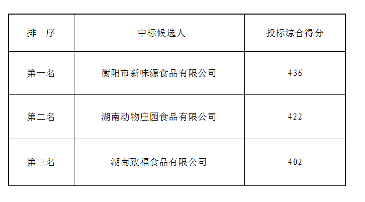 衡阳弘湘食堂食材(肉类)公开比选候选人公示