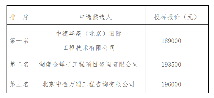 弘福雅苑项目可研服务单位采购于2022年3月25日上午9时00分(北京时间)进行了比选开标、评标活动,本项目采用“低价中标法”,经评审小组综合评审,现将中选候选人排名结果公示如下: