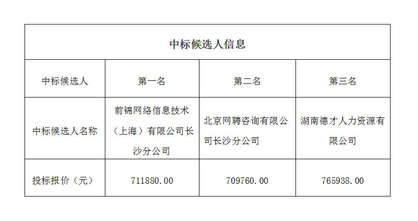 2022年衡阳市国资系统人才引进项目中介机构比选于2022年05月23日上午在衡阳市人民政府国有资产管理委员会3楼会议室(衡阳市蒸湘区西二环11号)举行了开标、评标会议,评标委员会按照比选文件规定的评标办法及原则进行评定,推荐中标候选人排名如下: