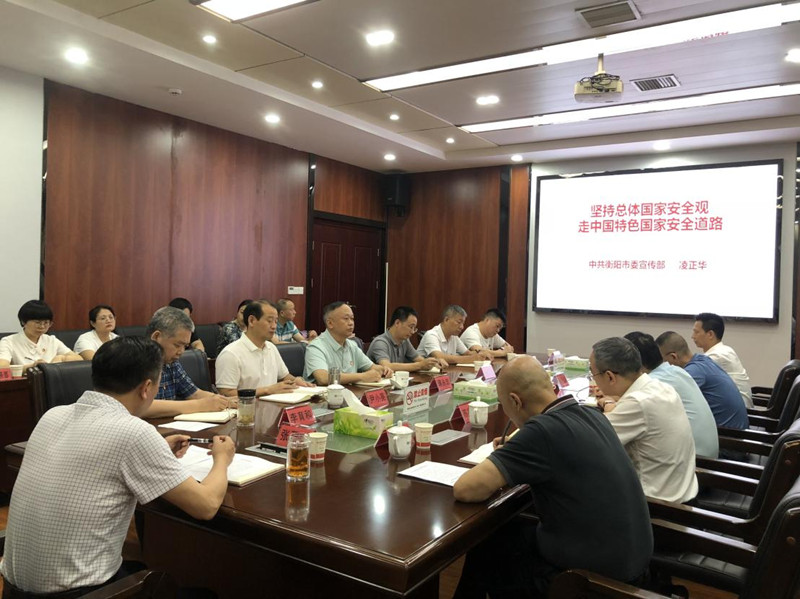为进一步提高政治站位、增强忧患意识、筑牢国家安全防线,6月10日下午,弘湘国投召开党委理论学习中心组学习(扩大)会议。市委宣传部干部理论科科长凌正华作专题辅导,集团公司党委书记、董事长张雨民主持学习并讲话。
