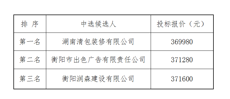 衡拖棚改(一期)扫尾零星工程施工单位比选中选候选人公示