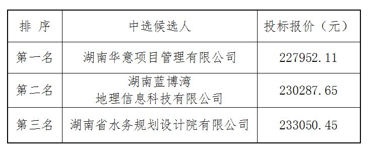 幸福河项目工程竣工测量单位比?。ǖ诙危┯?022年9月14日上午9时00分(北京时间)进行了比选开标、评标活动,评标委员会按照比选文件规定的评标办法及原则进行评定,推荐中选候选人排名如下: