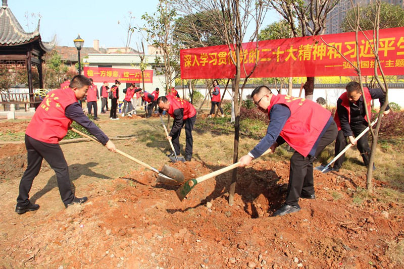 党建“红”引领生态“绿”,弘湘国投开展 “主题党日+学雷锋”植树活动