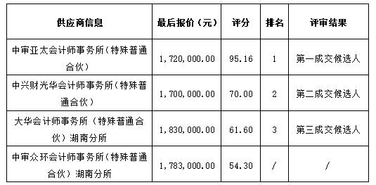 衡阳市国有资产投资控股集团有限公司的衡阳市国有资产投资控股集团有限公司(含下属子公司衡阳弘湘国有投资(控股)集团有限公司和衡阳市发展投资集团有限公司)2023年度财务报表审计服务项目竞争性磋商采购项目于2023年12月6日结束,现将成交结果公告如下: