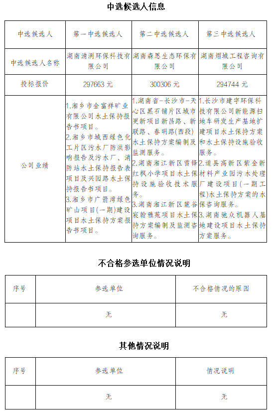衡阳(国际)眼镜小镇(标准厂房A1区项目、10KV配电工程项目)水土保持咨询服务内部比选中选候选人公示