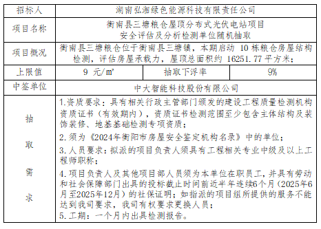 衡南县三塘粮仓屋顶分布式光伏电站项目安全评估及分析检测单位随机抽取结果公示