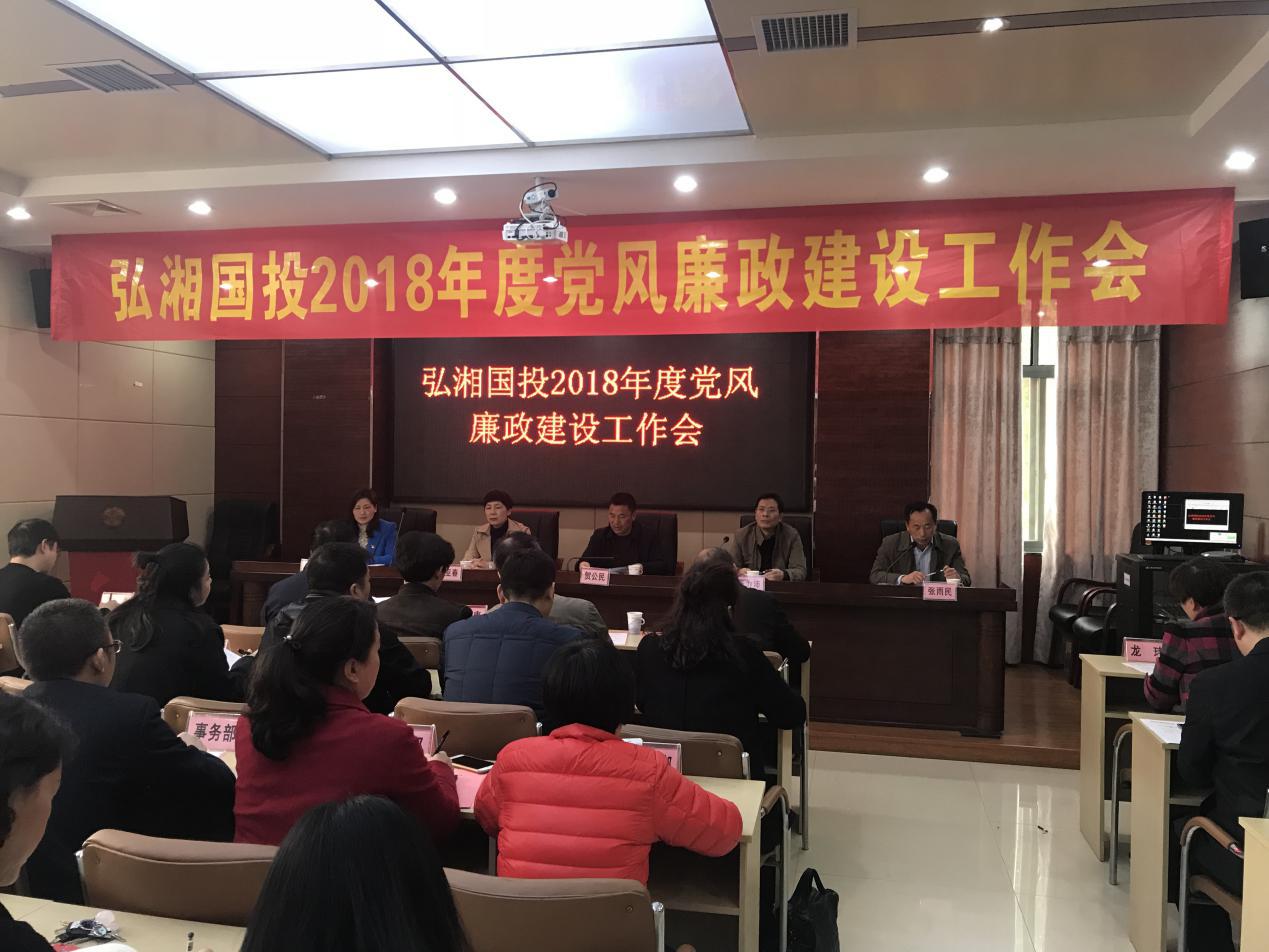 3月1日,弘湘国投召开2018年度党风廉政建设工作会议,公司本部全体人员、子公司班子成员及纪检联络员近70人参加会议。公司党组书记、董事长张力沛讲话,公司总经理张雨民主持会议,公司纪检组长阳丽萍作工作报告。市纪委正处级纪检监督员贺公民及市纪委四室主任许亚春出席会议并作重要讲话。