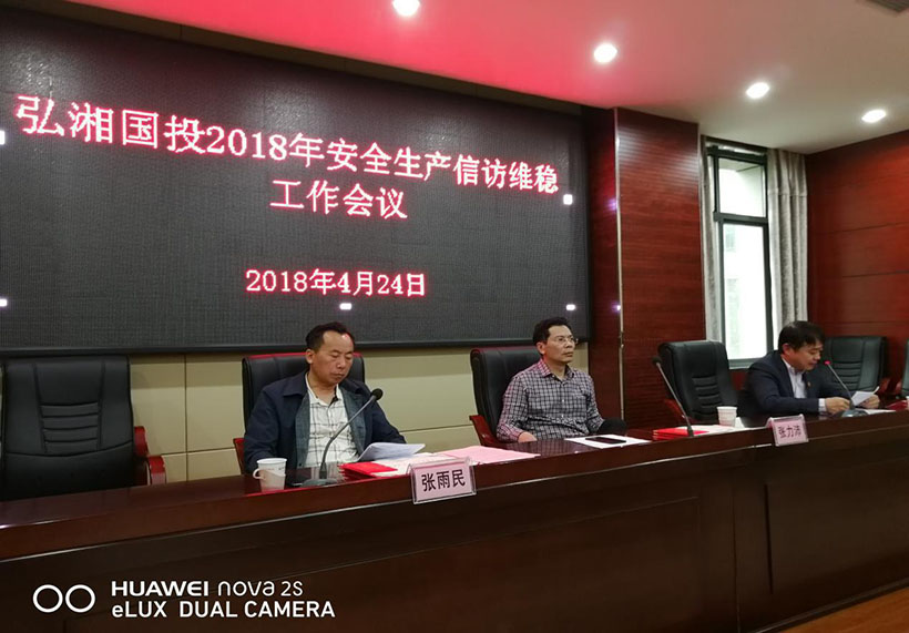 4月24日,弘湘国投2018年安全生产和信访维稳工作会议如期召开,集团公司领导、各部室、各项目部负责人,各子公司、重点企业负责人等共70余人参加了会议。会议由集团公司总经理张雨民主持。