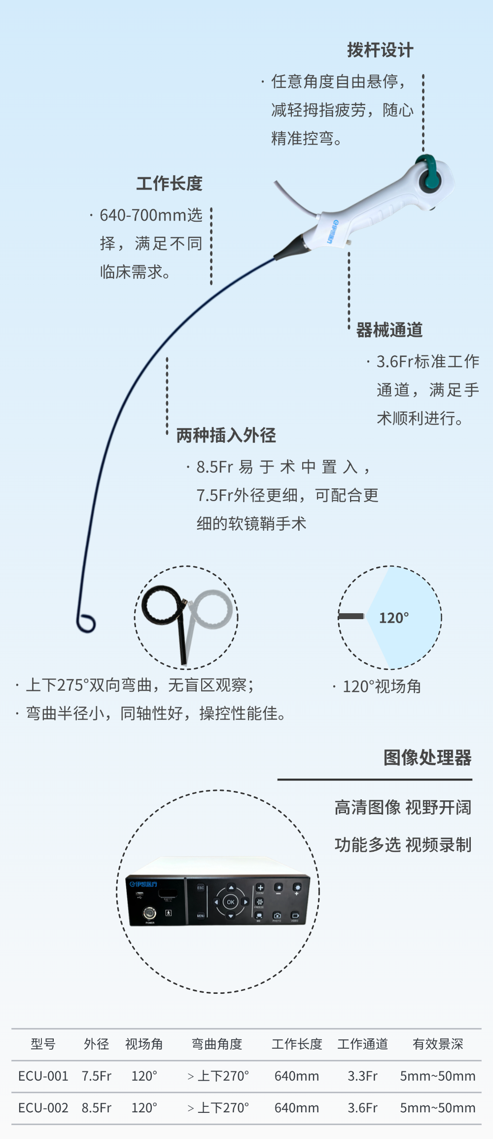 本產品適用于醫療機構,與本公司電子內窺鏡圖像處理器配合使用,經尿道進入人體,通過視頻監視器提供影像,配合內窺鏡附件,對患者輸尿管及腎盂進行內鏡檢查或內鏡手術。不可與高頻配件配合使用。
