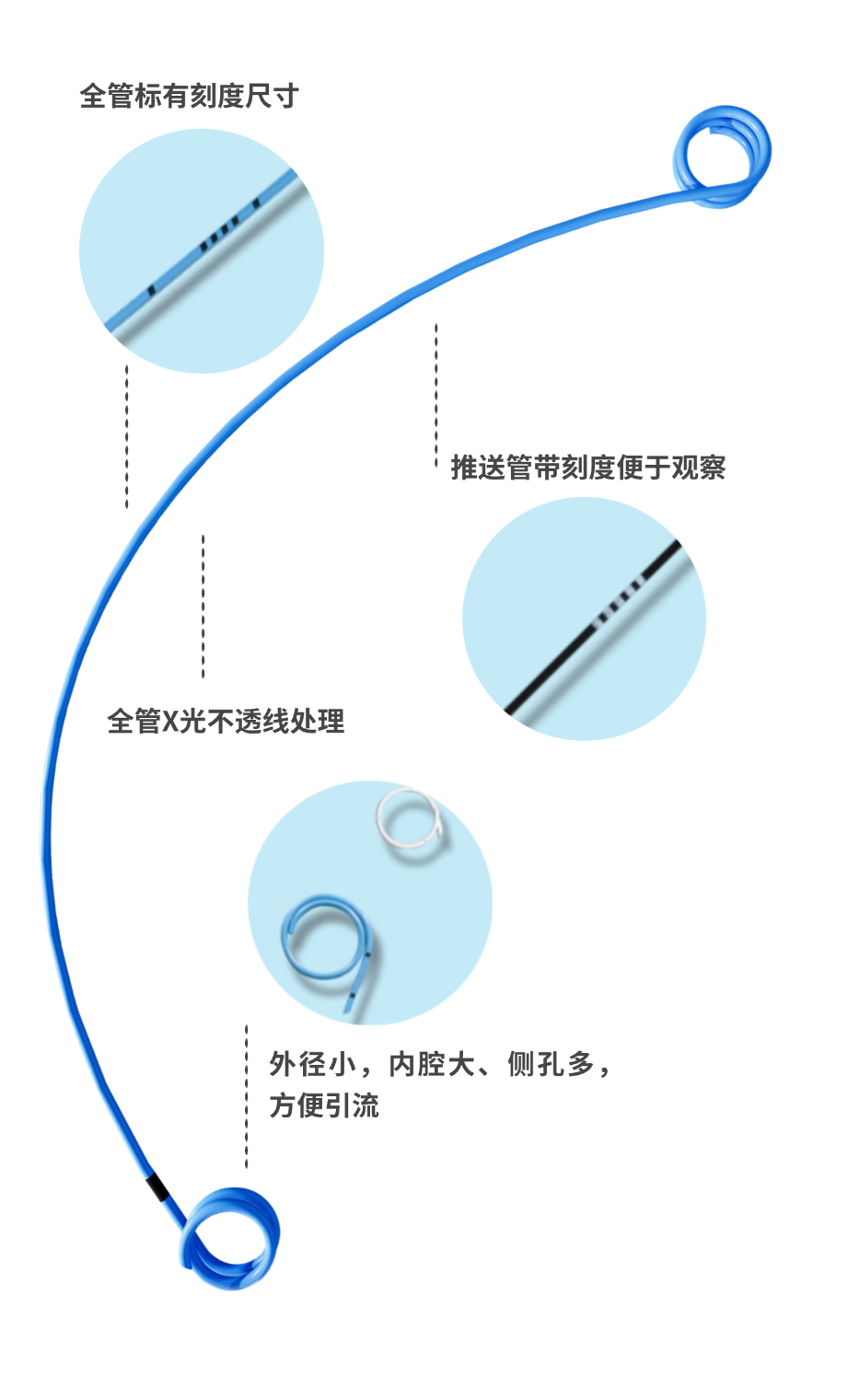管體尖端平滑過渡處理,使置管更順暢;