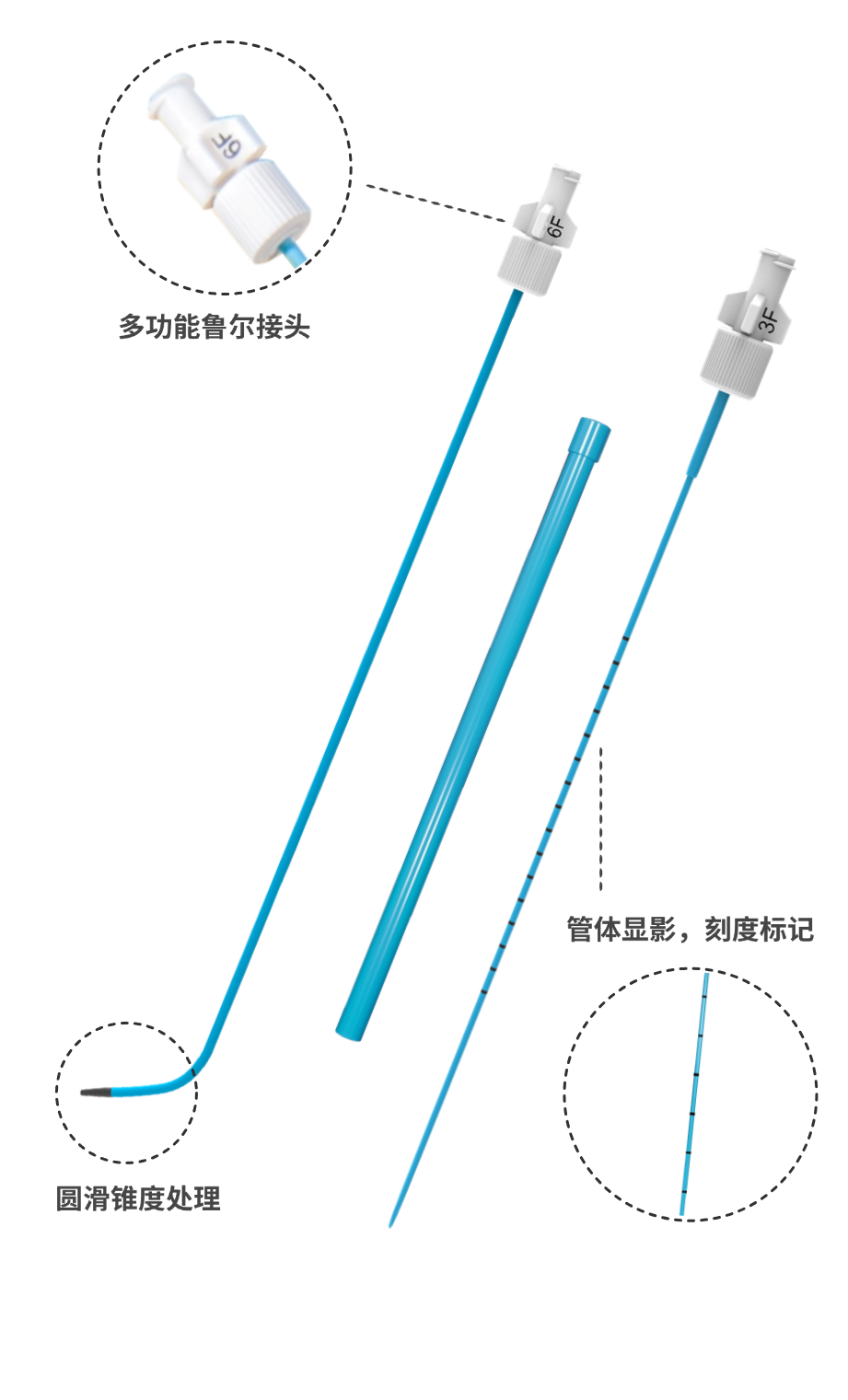 管體有刻度標(biāo)記及加強顯影,方便及時掌握管體進(jìn)入人體內(nèi)的位置;